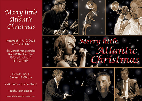 Nach über vielen Jahren wunderschöner Konzertabende mit der ATLANTA Jazzband kehrt der besondere Zauber dieser musikalischen Weihnachtsreise zurück - in neuem Glanz und mit vertrauter Seele. Mit MERRY LITTLE ATLANTIC CHRISTMAS lebt diese Tradition weiter: Beliebte englische und amerikanische Christmas Carols erklingen in jazzigen Arrangements - mal swingend, mal im Latin-Groove oder als gefühlvoller Slow Waltz. Auch einige deutsche Weihnachtslieder finden ihren Platz im Programm und laden zum Mitsingen ein. Ein Abend voller echter Vorfreude auf Weihnachten - eine Hommage an die ATLANTA Jazzband und ein neues Kapitel für alle, die diese Musik lieben.